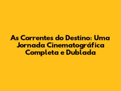 Ao assistir As Correntes do Destino, você terá a oportunidade de se conectar com os personagens, de sentir suas emoções e de refletir sobre suas próprias experiências. Você se sentirá tocado pela história, inspirado pela superação e emocionado pelos momentos de alegria. A dublagem em português garantirá que você não perca nenhum detalhe, permitindo que você se concentre totalmente na narrativa e nas emoções dos personagens. Não perca a chance de embarcar nessa jornada cinematográfica. Assista As Correntes do Destino completo e dublado e descubra por que este filme conquistou o coração de tantos espectadores. Prepare a pipoca, encontre um lugar confortável e prepare-se para se emocionar. As Correntes do Destino espera por você, pronto para compartilhar sua história e tocar seu coração. Assista agora e deixe-se levar por esta experiência inesquecível.