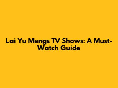 Lai Yu Meng's TV Shows: A Must-Watch Guide
