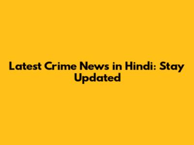 Latest Crime News In Hindi: Stay Updated