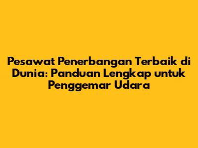 Memilih pesawat penerbangan terbaik dan maskapai penerbangan terbaik adalah kunci untuk pengalaman terbang yang tak terlupakan. Dengan mempertimbangkan kriteria seperti kenyamanan kabin, teknologi, keamanan, dan pelayanan penumpang, Anda dapat membuat pilihan yang tepat. Jangan lupa untuk mempertimbangkan reputasi maskapai dan fasilitas bandara untuk memastikan perjalanan yang lancar dan menyenangkan. Dengan informasi dan panduan yang tepat, Anda dapat terbang lebih tinggi dan menikmati setiap momen di udara.